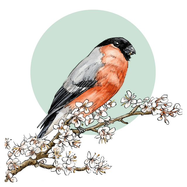 Bullfinch Bird Print - After original ink and watercolour illustration