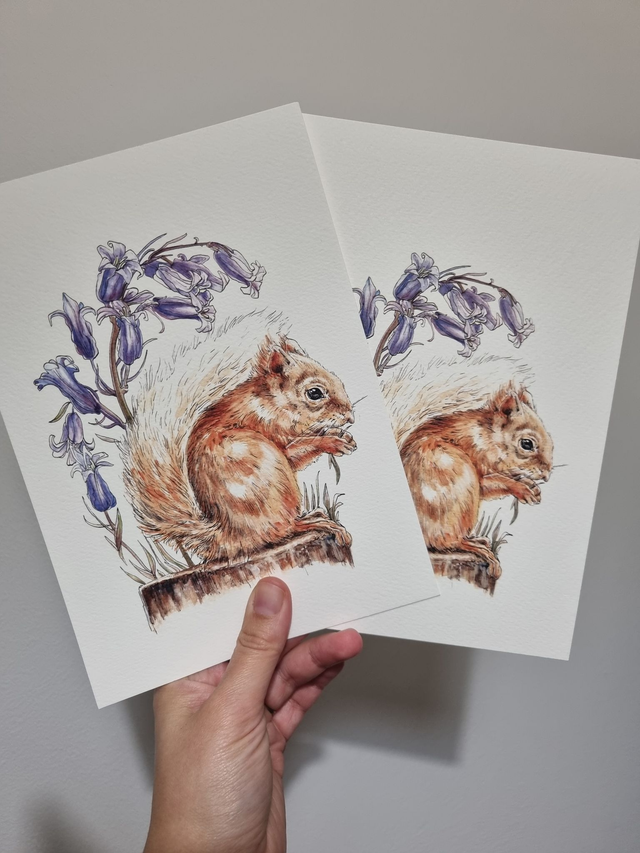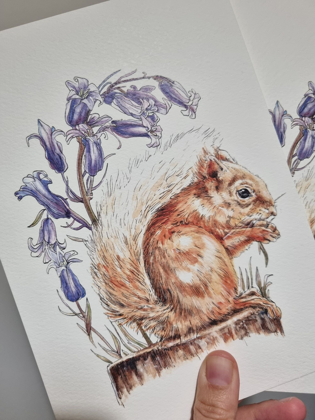 CLEARANCE - Old Paper Stock (textured) - Bluebells & Red Squirrel Print - A5 size.