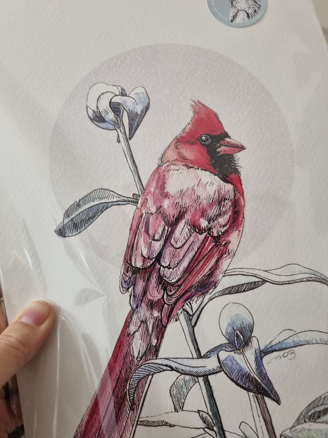 CLEARANCE - Old Paper Stock (textured) - "Northern Cardinal" - A4 size