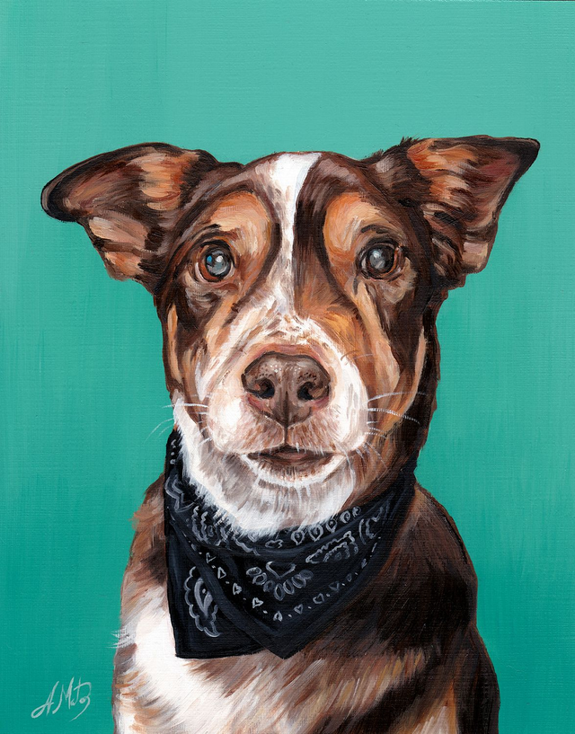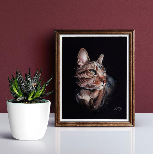 Custom Pet Portrait in Oil Paint on textured canvas paper. Available on 6'' x 8'' or 8'' x 10'' size. Unframed (if you'd like it framed or mounted this is possible for an extra fee).