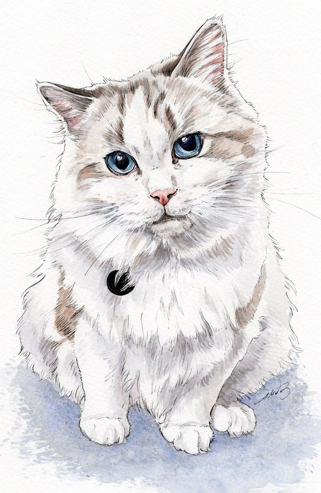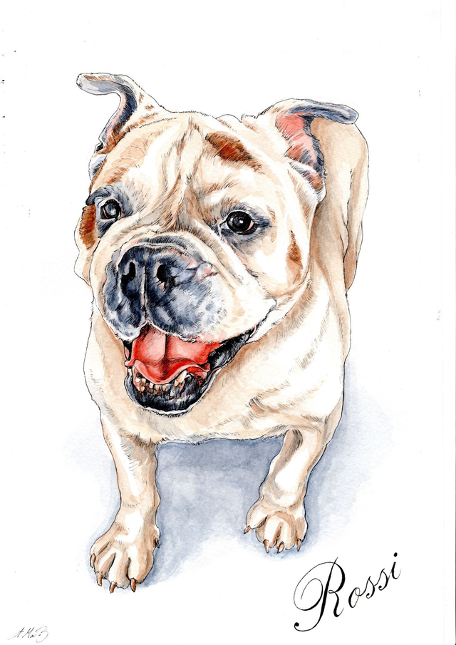 Custom Pet Portrait in Pen & Ink on white paper, coloured with Watercolour. A5 or A4 options available. Unframed (if you'd like it framed or mounted this is possible for an extra fee).