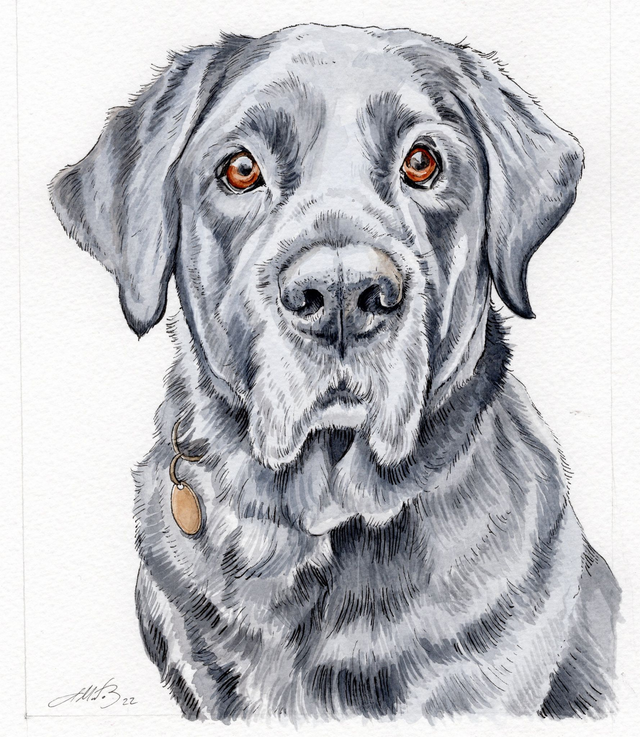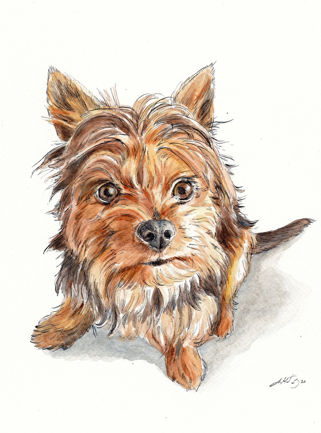 Custom Pet Portrait - Pen & Ink with Watercolour