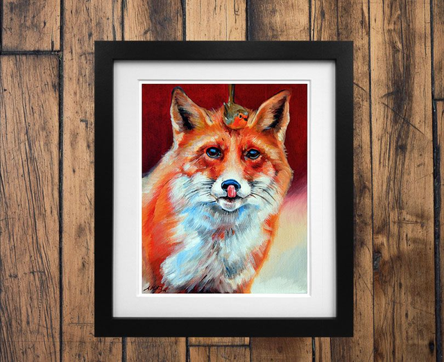 Fox and Robin Print - After an original oil painting on canvas