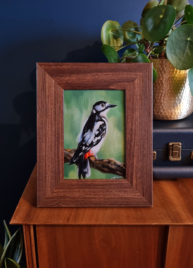Great Spotted Woodpecker - Original Oil Painting on canvas board - framed