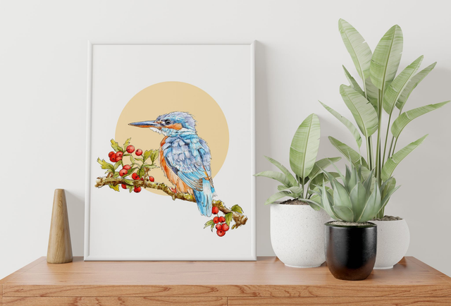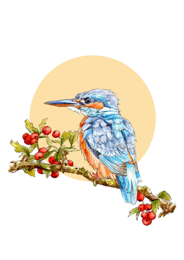 Kingfisher Print - After an Original Ink and Watercolour Illustration