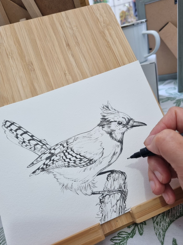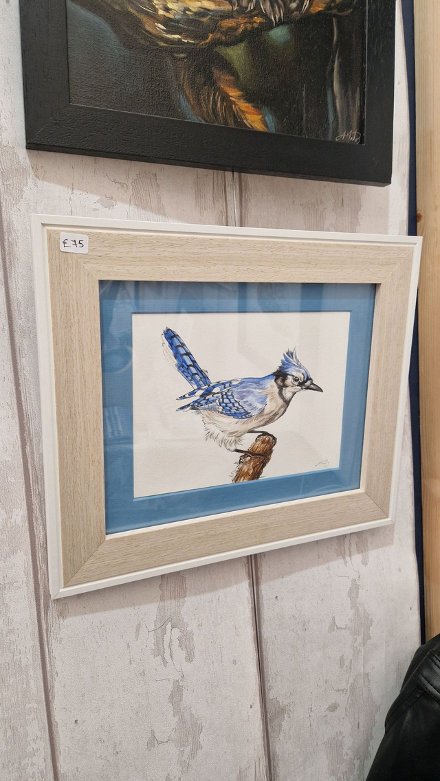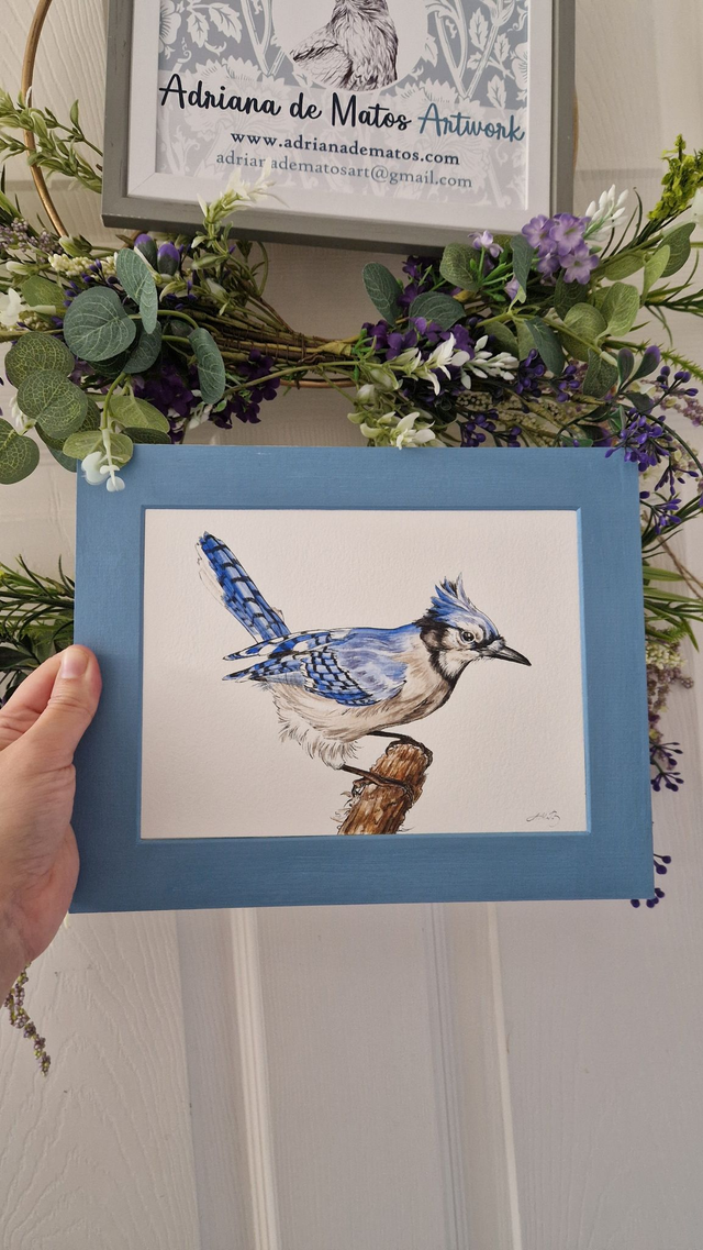 Original Illustration of a Blue Jay Bird - Pen and Watercolour on paper