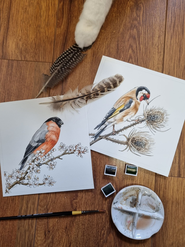 I also have a similar drawing of a Bullfinch - they look great together, as you can see in the photos!