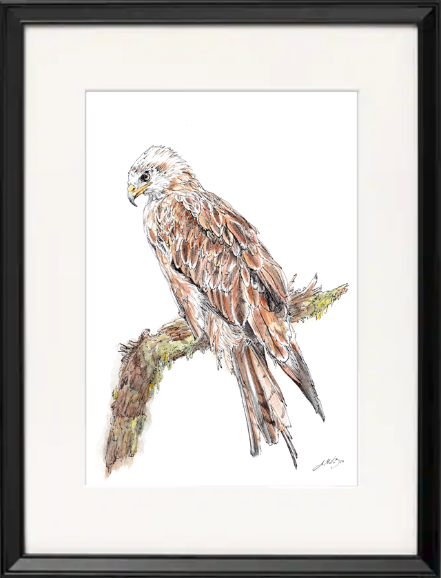 Original illustration of a Red Kite made with pen, ink and watercolour. Painted on textured watercolour paper, acid free, 300gsm. A4 size.