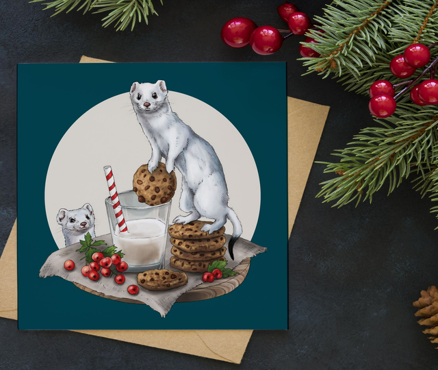 Christmas Card - Blank inside for your own special message. Printed on a bright, silk finish 350gsm card stock, 15 x 15 cm size. It comes with a brown craft envelope.
